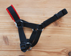 Halfter aus schwarzem 2cm Nylonband, alles vernäht mit Nasenposterung aus Filz. Als Verschluss zum einfachen Öffnen und Schliessen verwenden wir Polyamid-Steckschnallen.