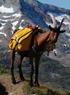 | Packgeiss mit Vollbepackung |